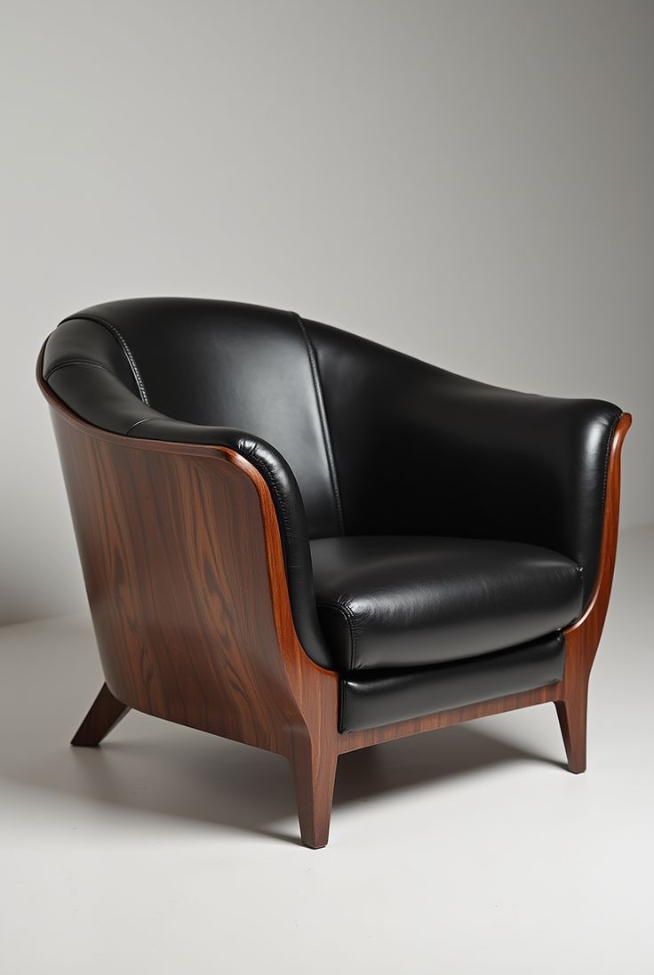 Modern lounge chair with a smooth solid wood frame and plush black leather upholstery. The curved design offers excellent comfort while adding a sleek, premium look—perfect for living rooms or lounge areas.
